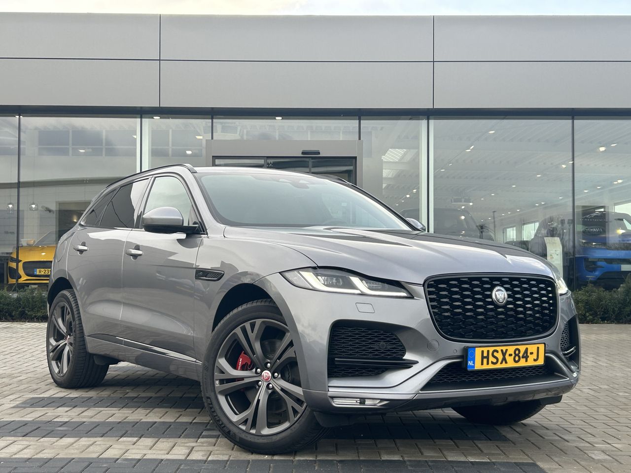 Fantastische Jaguar F-PACE P400e 404pk AWD S in de kleur Eiger Grey Metallic met schitterende 21" originele SVR wielen (breedset) en een prachtig chique Diamond Stitched Windsor lederen interieur.